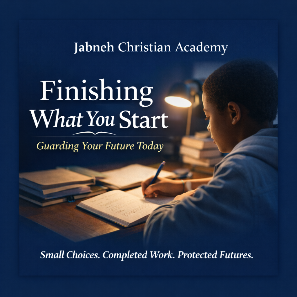 At Jabneh Christian Academy, we encourage our icons and our wider community to develop habits that protect tomorrow. Finishing what you start is one of those habits. Choose it daily, and watch how it shapes your path forward.